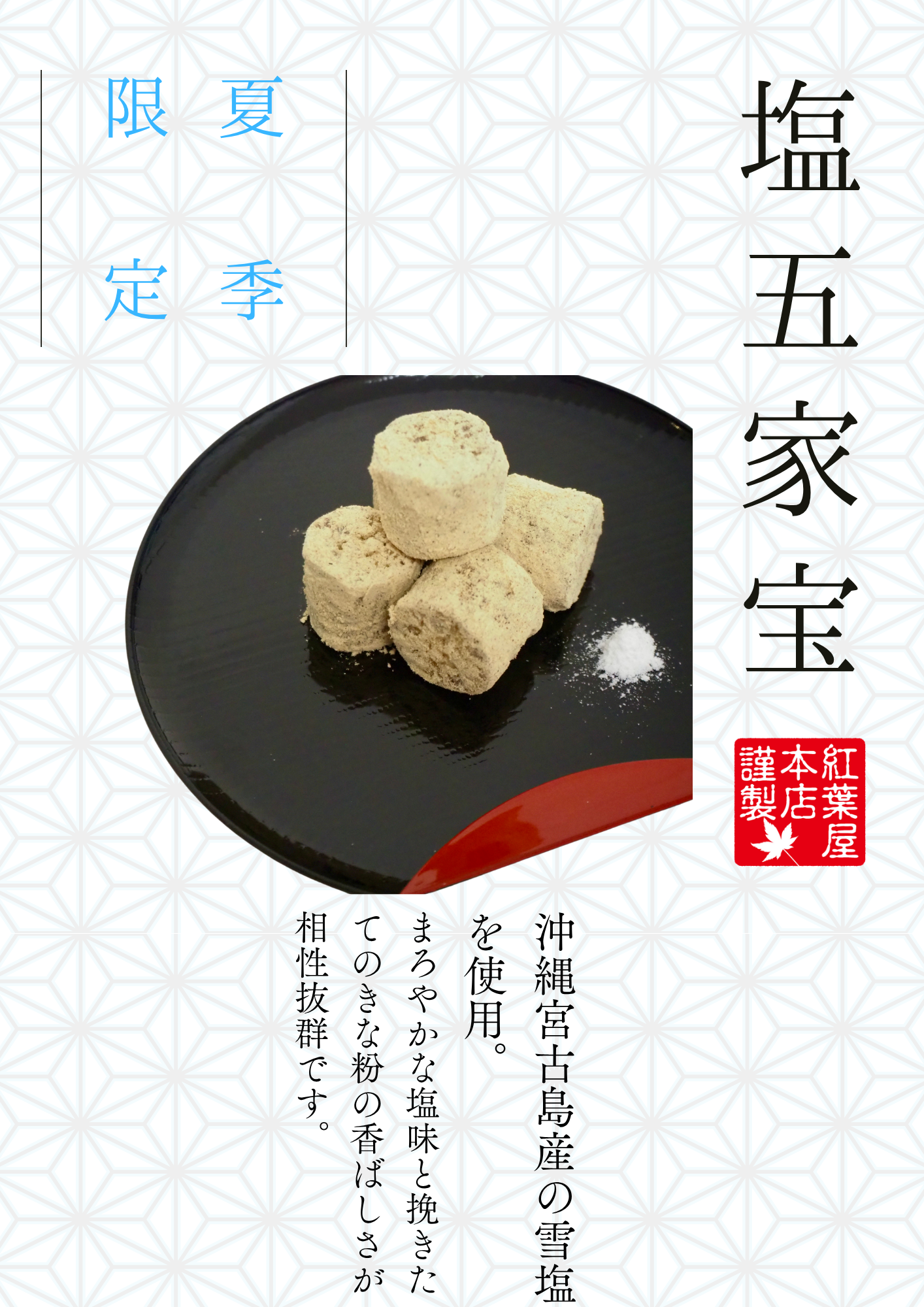 2025/06/11 夏季限定 『塩 五家宝』販売します 販売期間:2025年6月13日(金)~2025年9月中旬頃まで販売店舗:JR熊谷駅AZロード店、八木橋百貨店、本社工場売店、オンラインSHOP、他