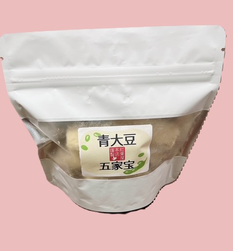 希少な山形県産青大豆『越後みどり』を使用したウグイス色の五家宝、上品な甘さに仕上げました。